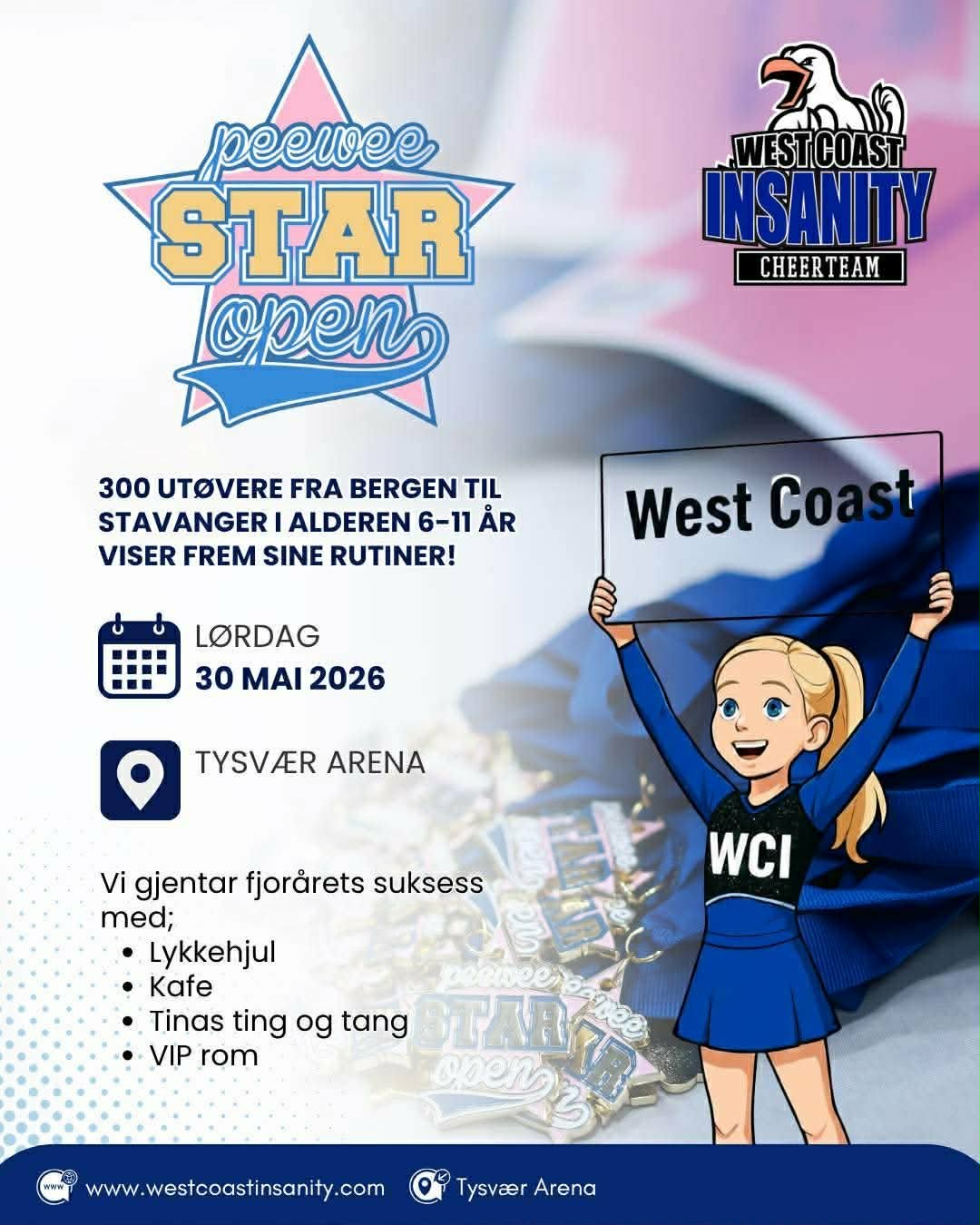 300 utøvere fra 8 klubber skal vise frem cheergleden i Tysvær Arena Haugesund Sparebank.